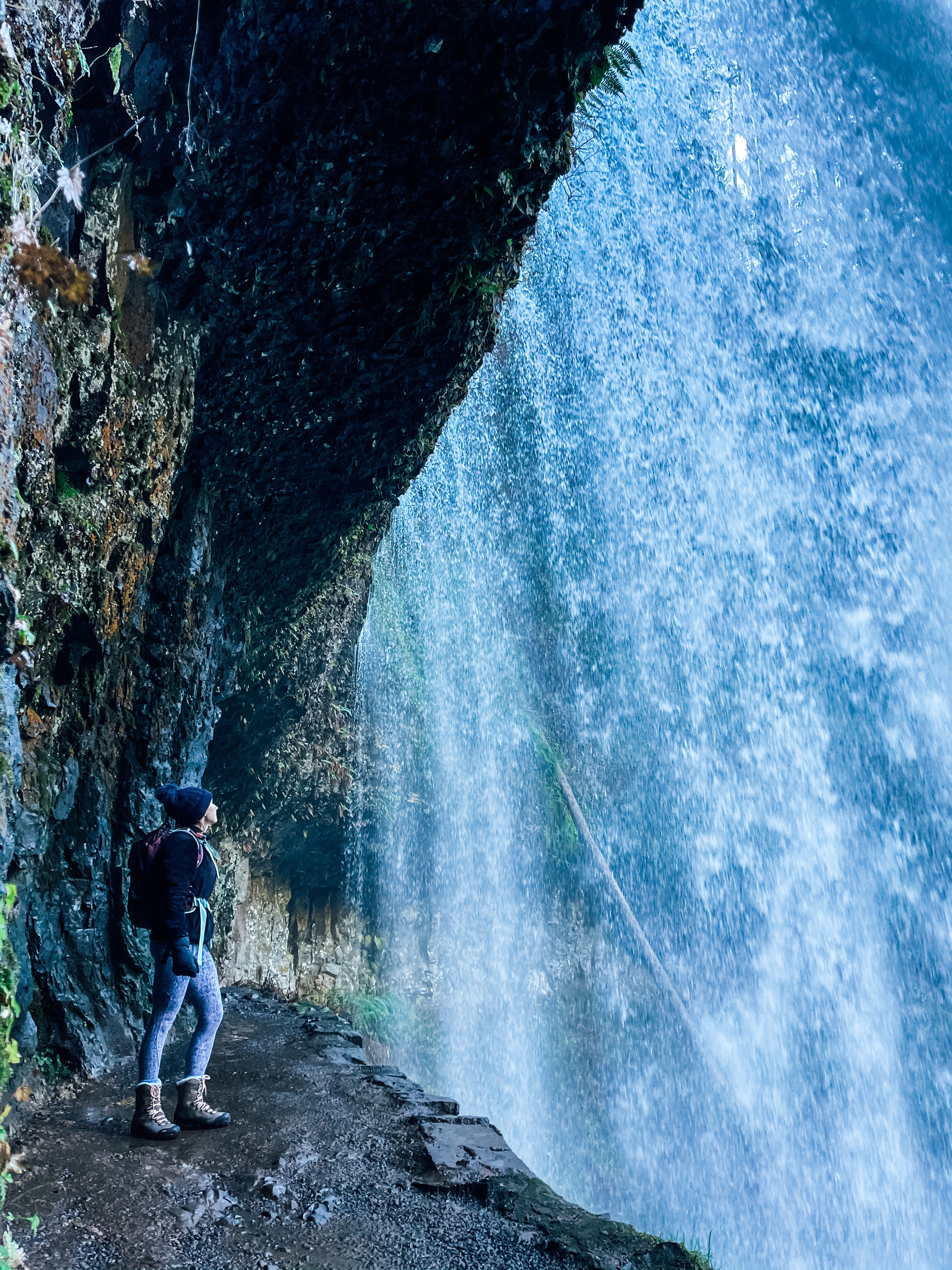I don’t know what it is about being behind a waterfall but I could spend all day staring at the water falling above me. Listening to the rumble and feeling the vibrations.