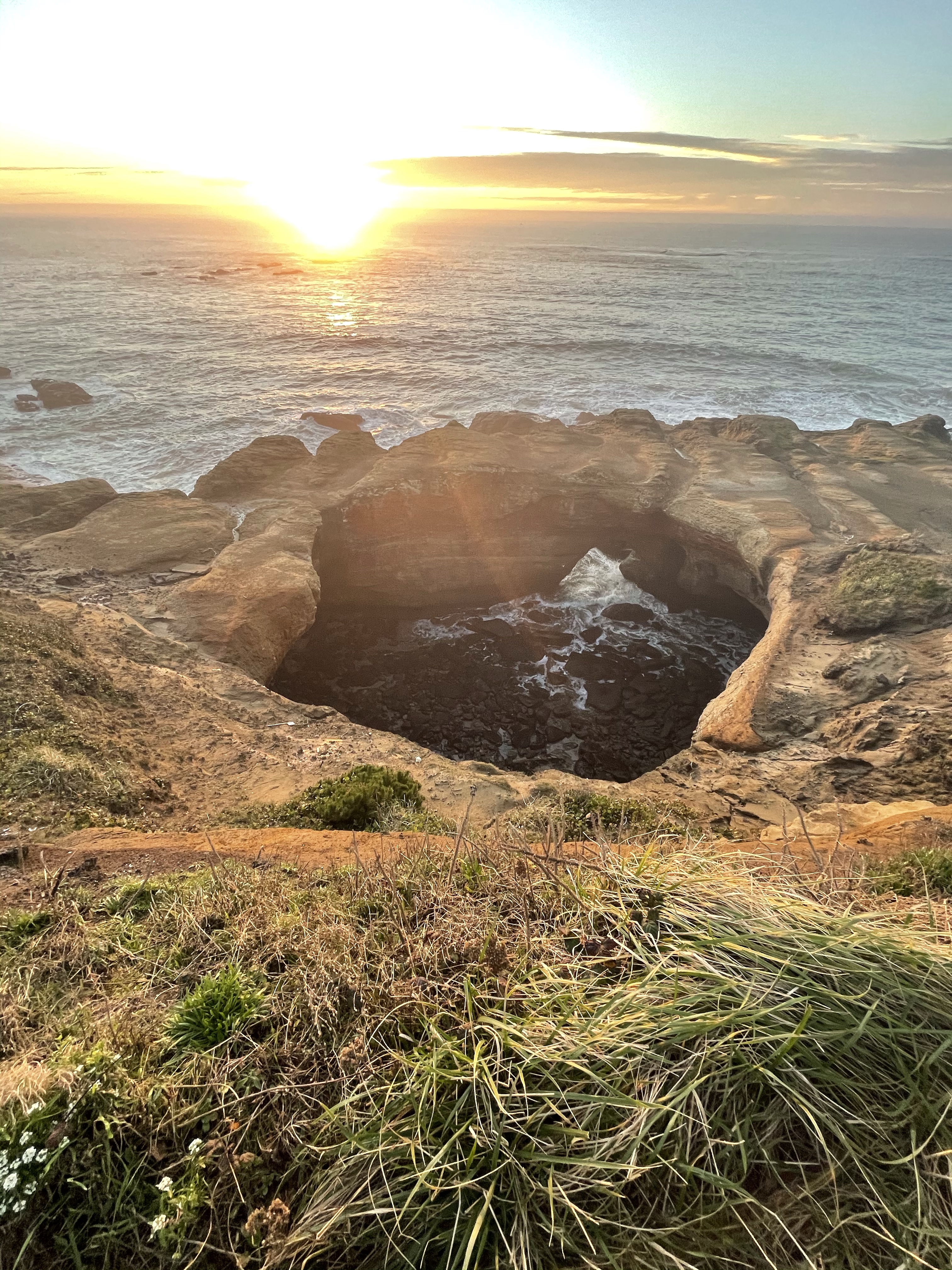 Then we took off back towards Portland… but before we could get very far out of town we noticed a sign for “Devils Punchbowl” and decided to take the small detour off the road to view it before the sun went all the way down.