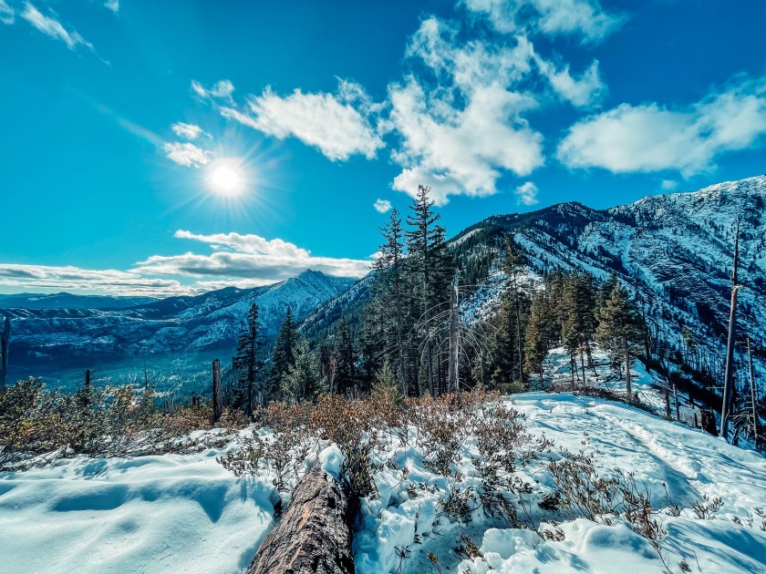 The end of the trail was a snow covered ridge that overlooked Leavenworth. Which I prefer the backdrop of the mountains, but the view of the town was pretty awesome too.